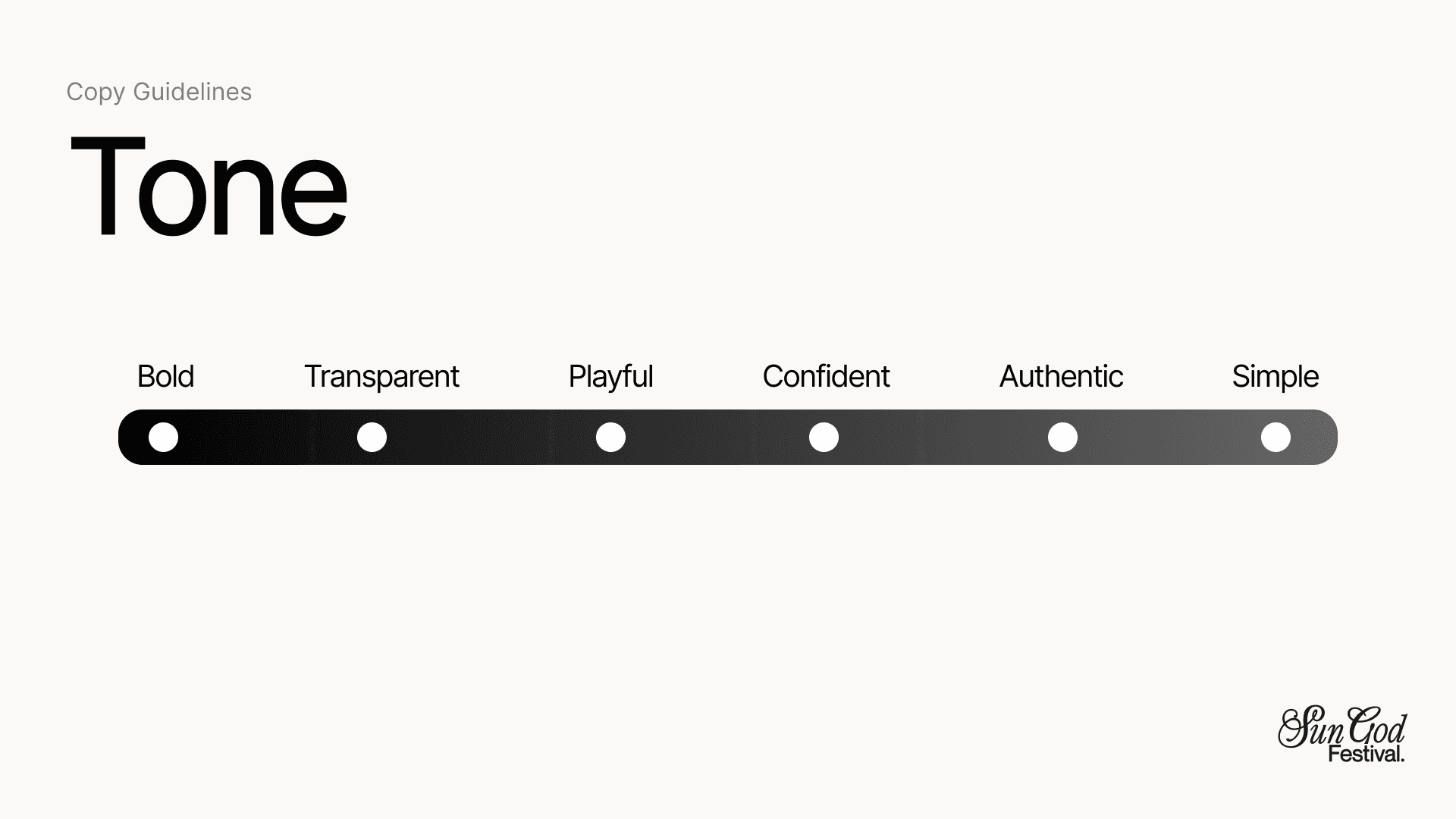 For this year’s Sun God Festival, I established a bold, playful, and approachable brand voice. By applying it consistently across all copy and touchpoints, I created a sense of trust, credibility, and connection with our audience.