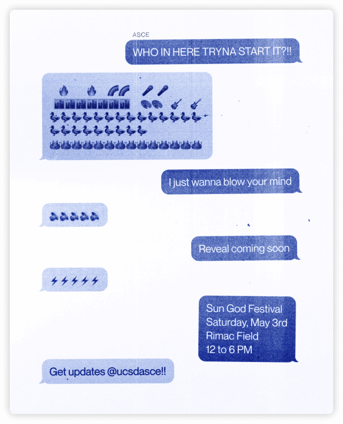 The previous year, Sun God Festival was unexpectedly canceled by administration, leaving students without their most anticipated tradition. Heading into this campaign, I faced balancing inflated expectations while bringing unprecedented excitement into the festival through a unique visual and storytelling-focused marketing campaign.